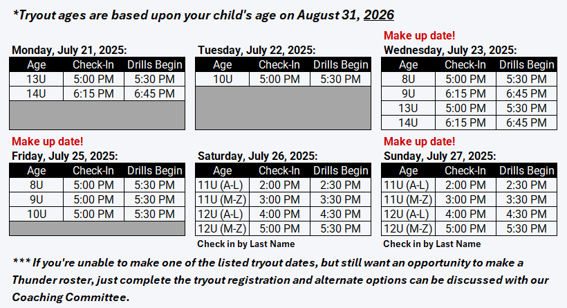 Tryout Dates/Times